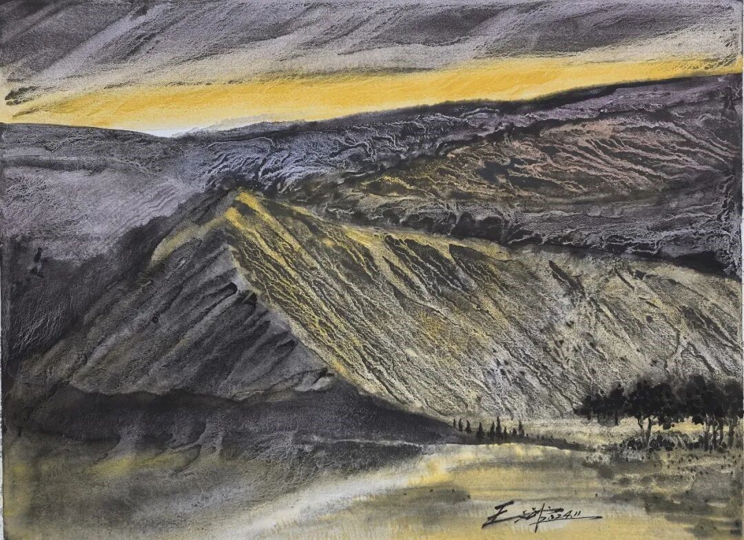 张昊《安塞石窟遗韵》水彩46×63cm2020
