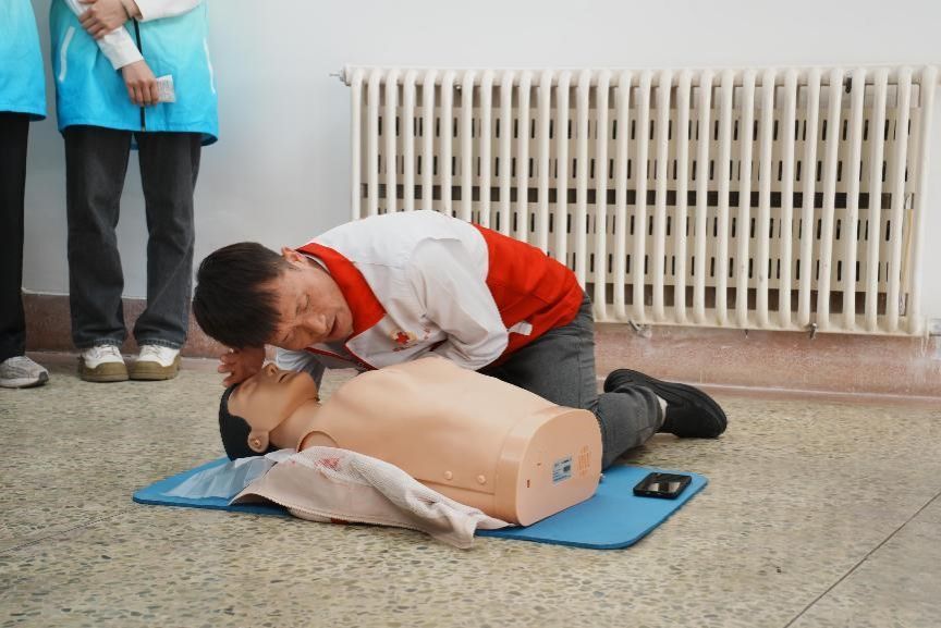 本次培训聚焦运动伤害场景,重点教授心肺复苏(CPR+AED)、中暑及摔伤处理。讲师通过真实案例解析急救要点,并模拟运动员心脏骤停、关节扭伤等突发状况演示操作技巧。志愿者们通过线上理论测试后,分组进行实操练习,从胸外按压深度到人工呼吸技巧,反复练习,力求精准掌握每一个步骤。参训志愿者康同学表示:"AED使用和创伤包扎这些技能非常实用,遇到紧急情况我能更快反应了。"