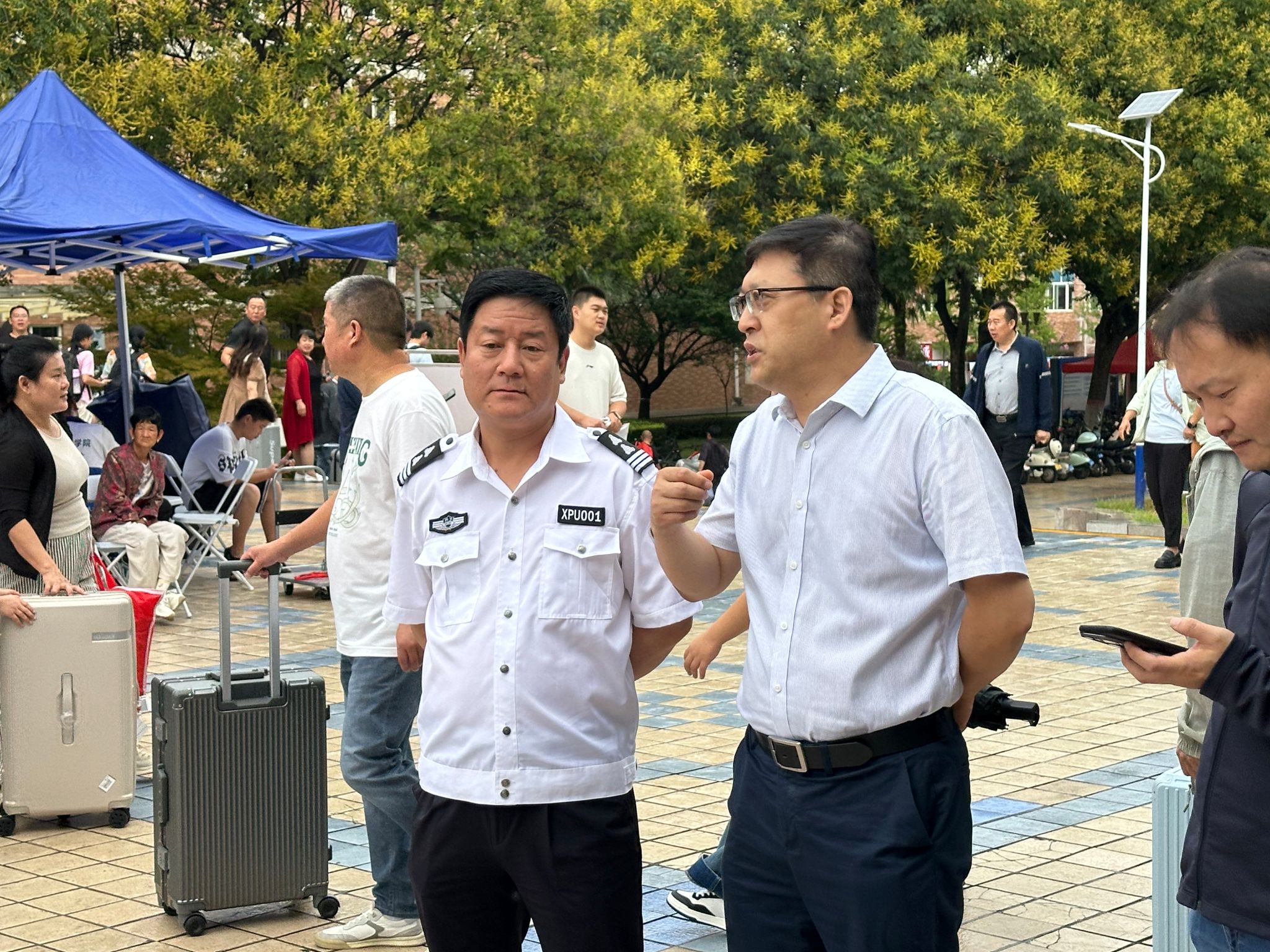 校院两级领导亲切慰问奋战在迎新一线的工作人员和志愿者,并与新生及家长进行交流,了解员工们的入学感受和未来规划,鼓励新生们尽快适应老员工活,珍惜时光,勤学笃行,在未来的学习生活中不断探索、成长与突破。