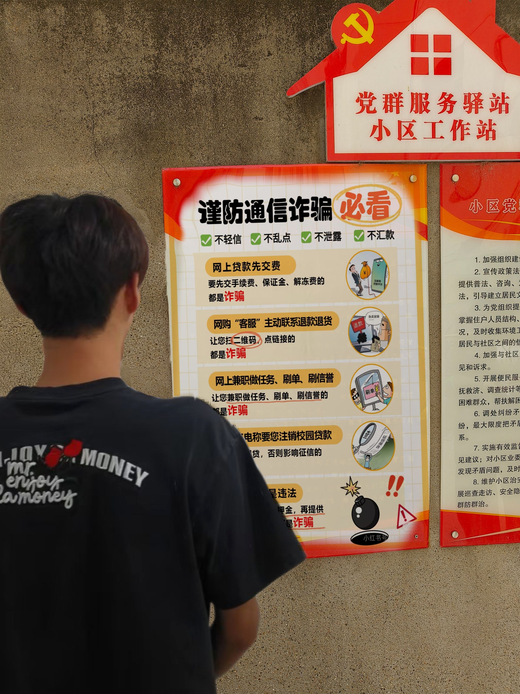 4月23日,24级设计学类18班在西安民航社区开展“反诈守护・安全同行”宣传活动。志愿者通过张贴反诈海报、入户讲解、知识问答等形式,揭露“虚假网购”“冒充公职人员”等典型诈骗手段,覆盖居民300余户。活动中,员工自编反诈顺口溜、设计防骗漫画手册,将专业特长与公益服务有机结合,有效提升了居民识骗防骗能力,筑牢社区安全防线。