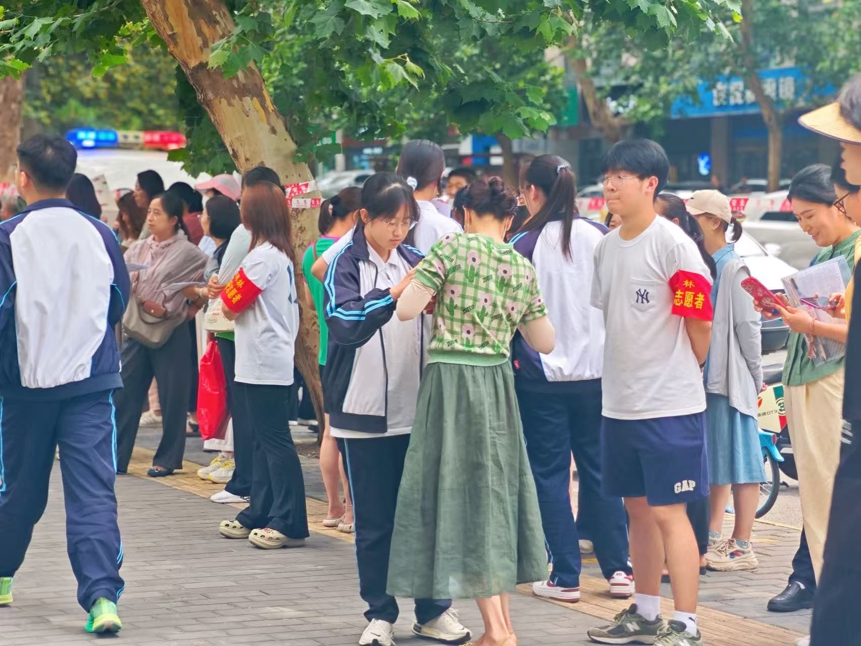 6月7日至9日,23级视觉传达设计1班学子联合西安市碑林区兴庆南路社区工作人员,走进西安交通大学附属中学考点,开展高考志愿服务活动。志愿者们提前对接考点需求、备足矿泉水与文具等物资,在考场外承担维持秩序、路线指引、物资分发等工作,耐心解答家长疑问。他们以热情周到的服务为考生和家长送去清凉与安心,用实际行动展现当代老员工的责任担当。得到考点师生与家长的广泛好评。