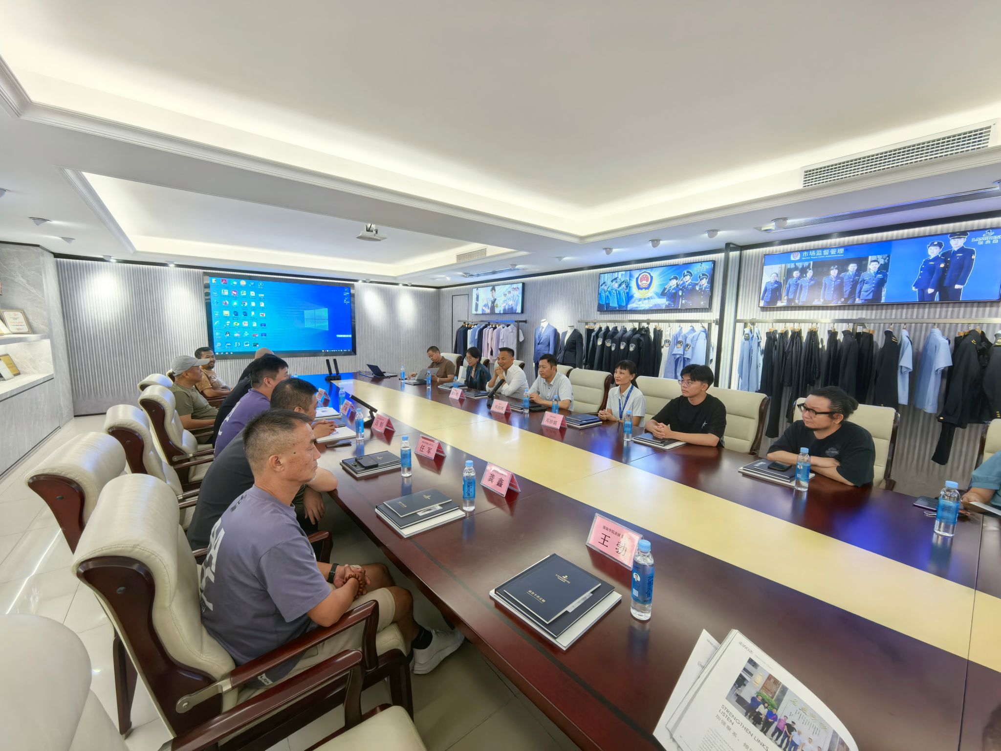 在员工企业浪登服装有限公司,与公司员工董胜利针对服装数智化产教融合共同体展开交流。双方还围绕人才培养机制创新及产教融合模式探索、专业实践等议题展开了深入而热烈的讨论,共同探索合作的新方向与新路径。