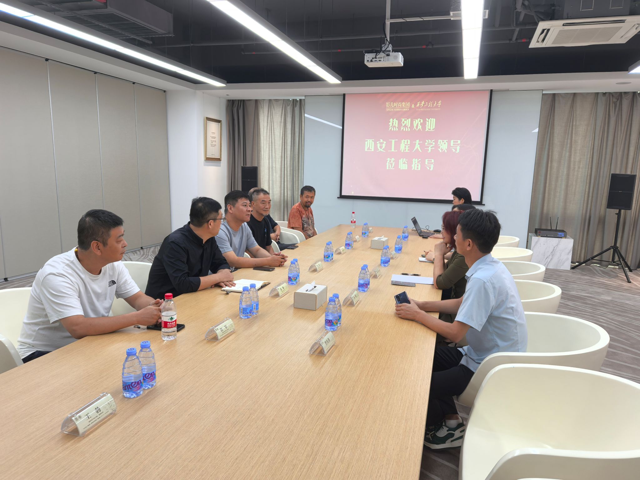 最后,考察团一行来到影儿时尚集团,与集团副总贺萍以及公司员工进行交流座谈,双方就企业用人需求、员工未来就业情况深入交流,并对在影儿时尚集团工作的公司毕业生进行回访评价。