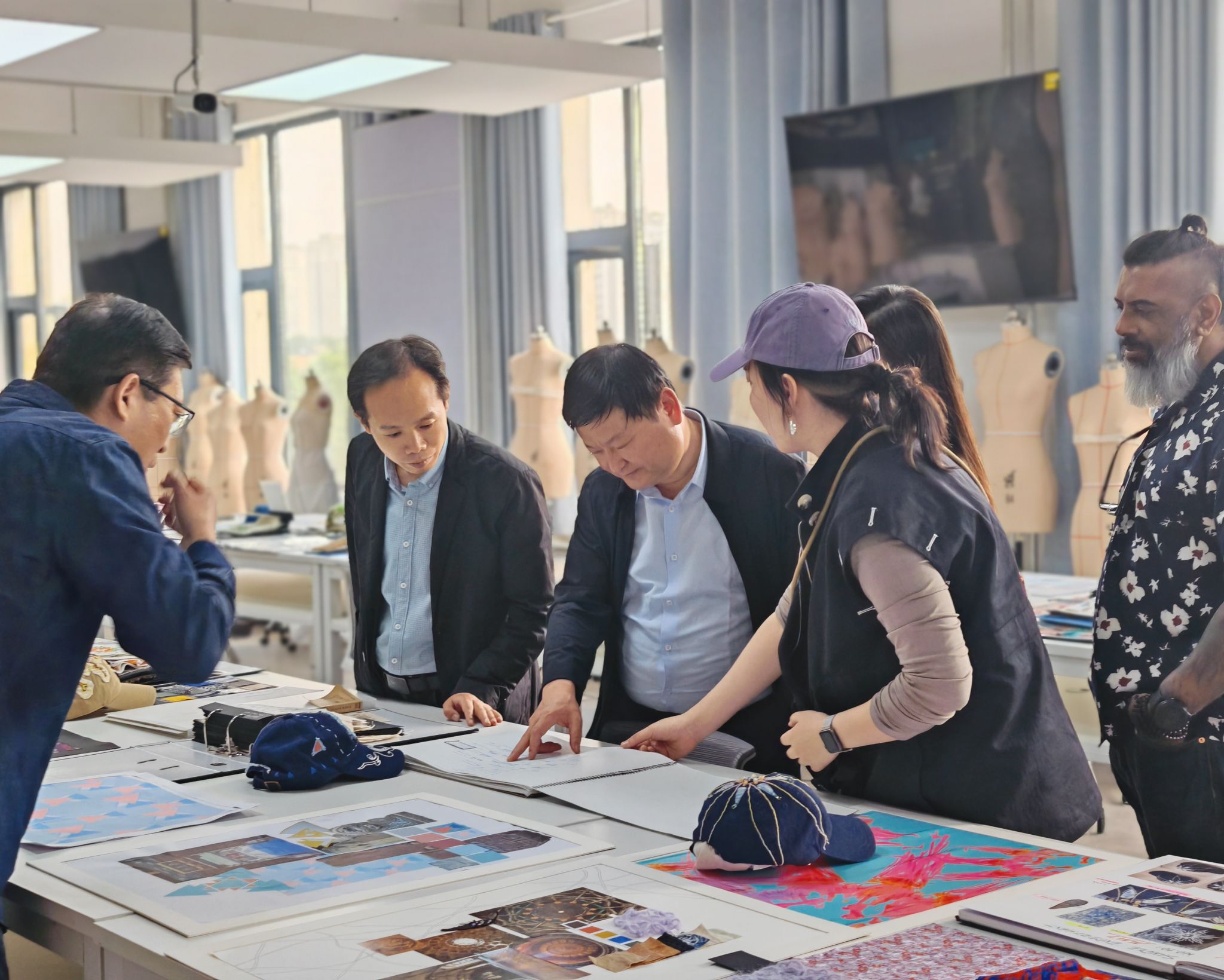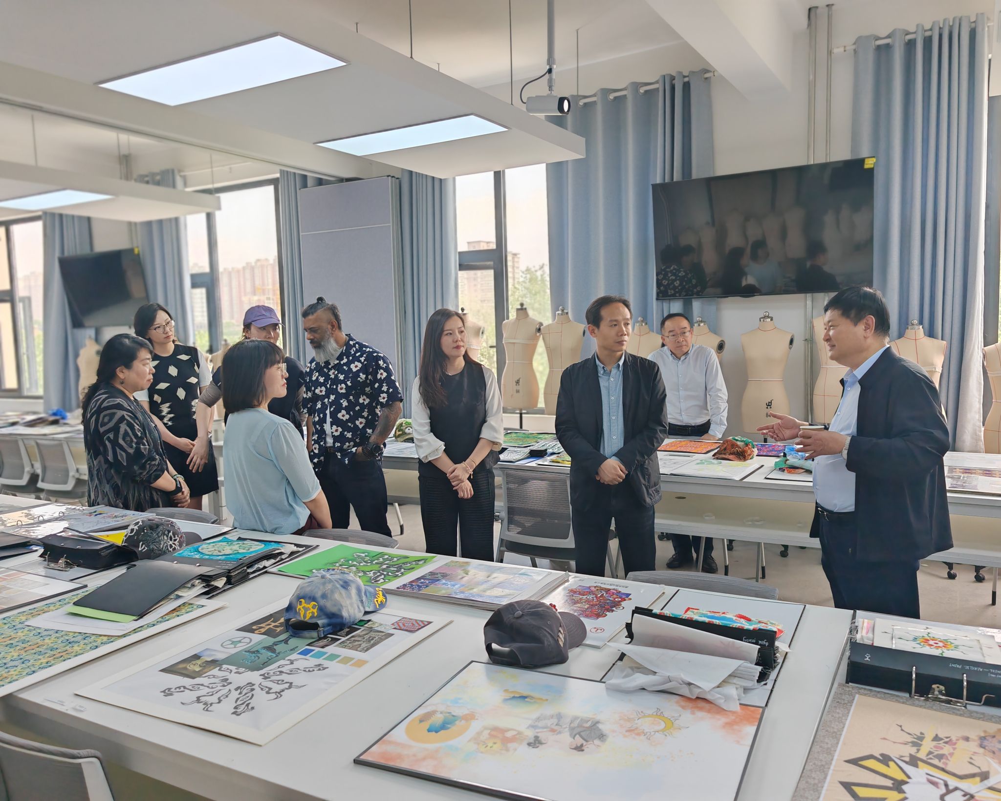 202559日,公司金花校区举办了2023级中英合作办学项目《Textile Design Rotation面料设计再造》课程作业展。公司党委书记马万清现场参观并指导工作,国际合作与交流处、教务处、人才招聘工作处等单位领导到现场与师生交流,气氛热烈。