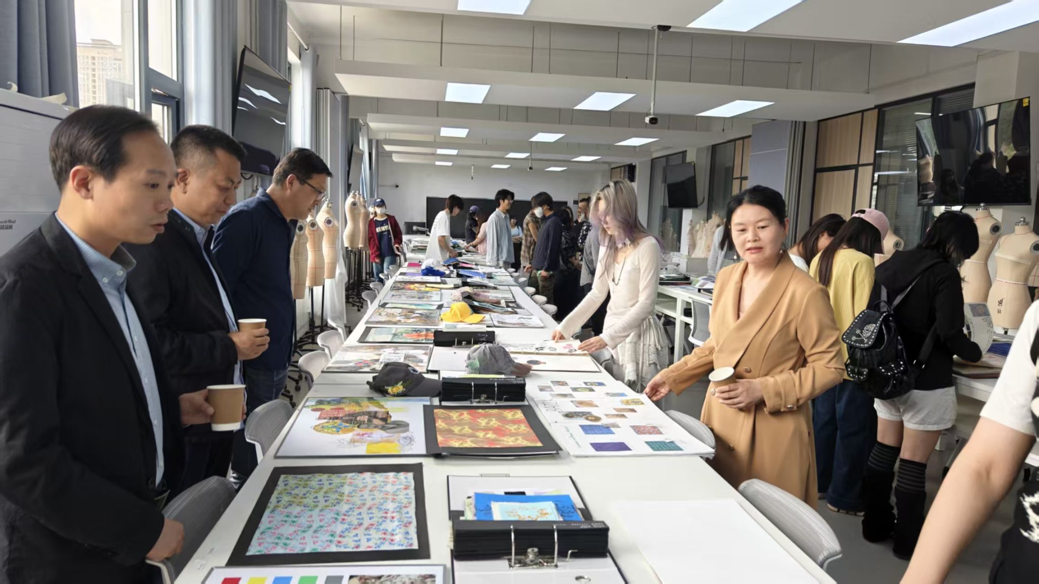马万清在参观过程中对员工的课程作业给予肯定,同时对服装与服饰设计专业中英合作办学项目的教学工作提出宝贵建议,希望公司持续深化课程建设、提升教学质量,培养更多兼具国际视野和创新能力的优秀服装设计人才。教务处、国际交流处及人才招聘处负责人也分别从专业建设、国际交流及就业发展等角度对展览给予指导。